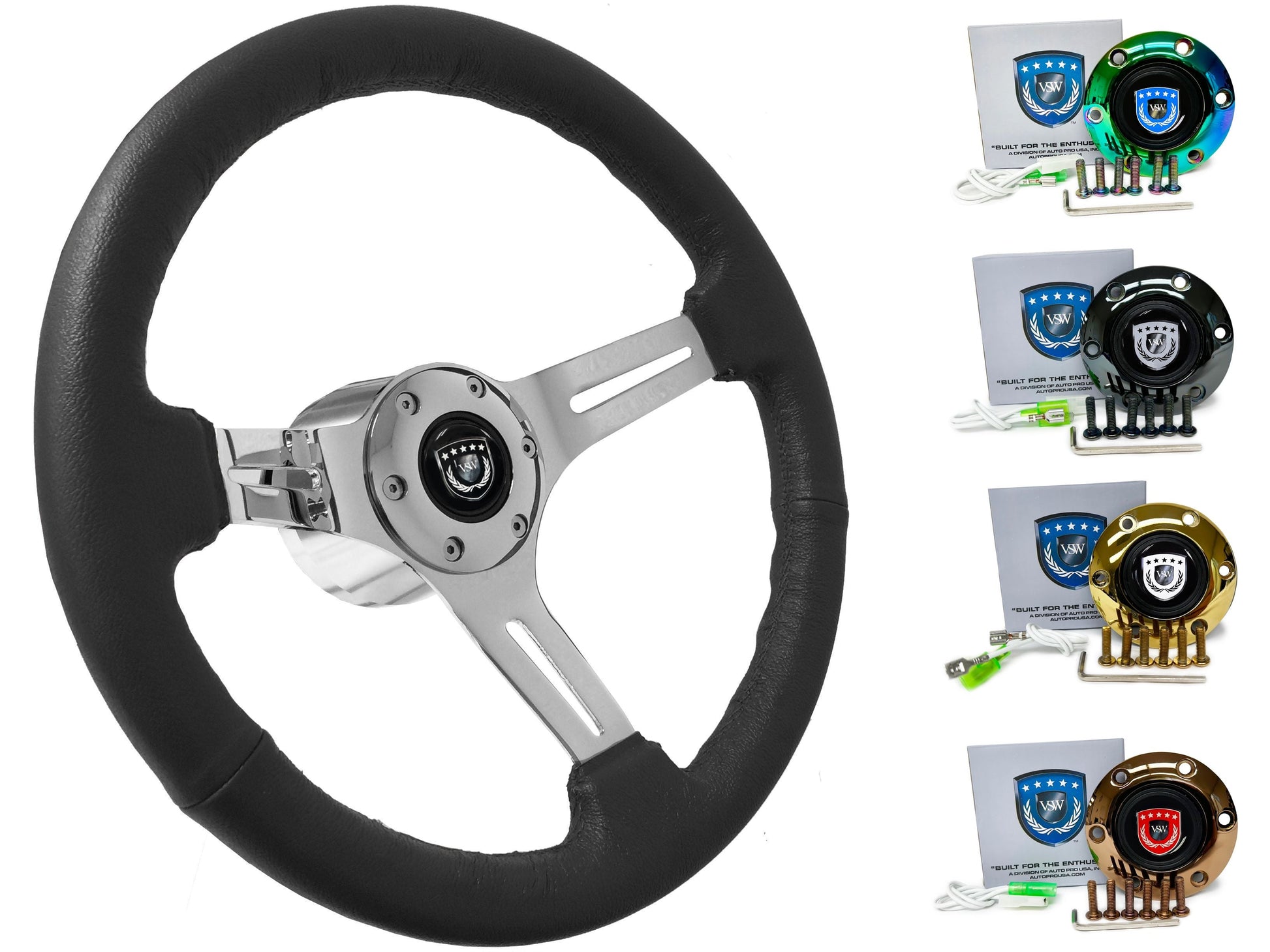 - Comes standard with VSW Emblem and Horn Button | STEVSWBLK-CHR
